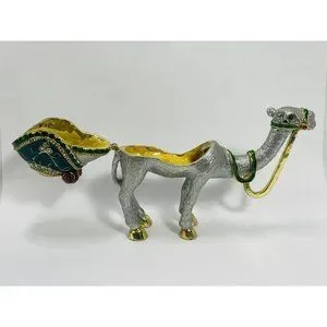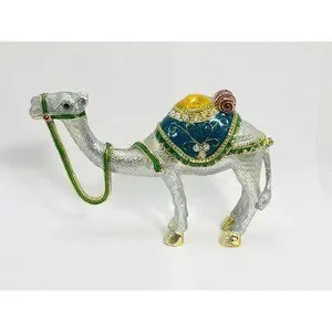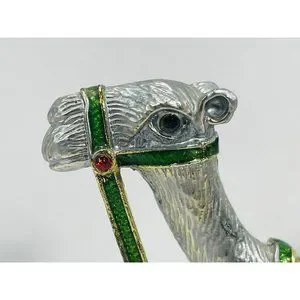 Crystal Bejeweled Camel Heavy hinged Trinket Box Silver Gold Emerald Colored.