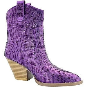* Forever Women Cowgirl Cowboy Western Ankle Boots Pointy Toe Rhinestone Bling Short Booties RIVER-01