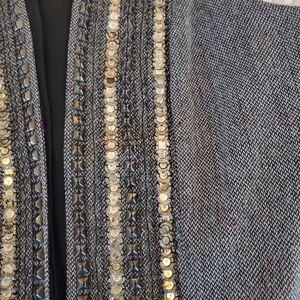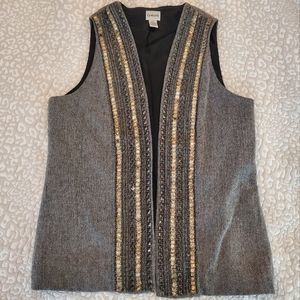 Chico's Grey Beaded Embellished Lined Wool Blend Vest