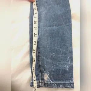 9 1/4" mid rise, fitted through the hip and thigh with a 10" skinny leg opening, 28" inseam.