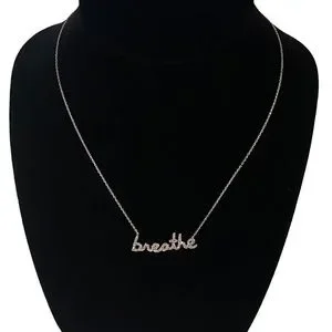 Silver and pave-like CZs help to remind you to “breathe”. Motivational and inspirational in a subtle sparkly message. Chain has hook eye closure and can adjust in length.