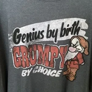 Purchased at Disney world Florida Genius by birth GRUMPY by choice Dark charcoal grey Size 2x New never worn Without tag