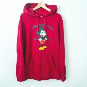 VANS X DISNEY Red Mickey Mouse Graphic Hoodie L Unisex large Minor unraveling on one tie