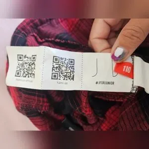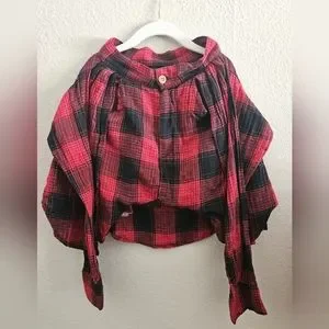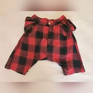 Red and black shorts with shirt motif . Made of cotton. Fastened with button and zip. Embellished with woven check pattern.