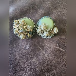 Vintage green clip on earrings