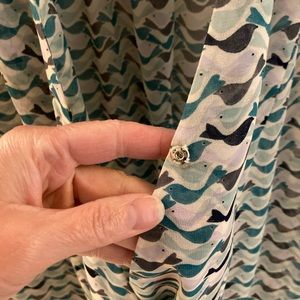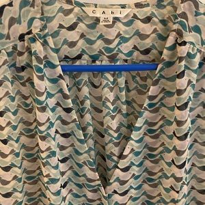 Cabi sheer tweet bird sleeveless wrap shell. Sheer lightweight fabric. Cabi style 342. Hidden button at the bottom of the v neck.