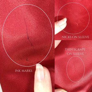 • Very Good condition with some minor flaws on the right sleeves: some ink marks from a pen, a few tiny nicks in the satin and a thin scrape or scuff on the satin.