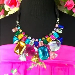 Very Pretty Colorful Rhinestone Statement Necklace that was purchased online, but not used.