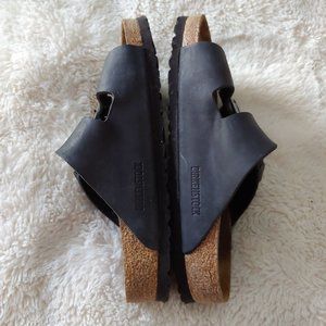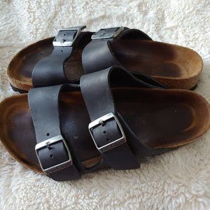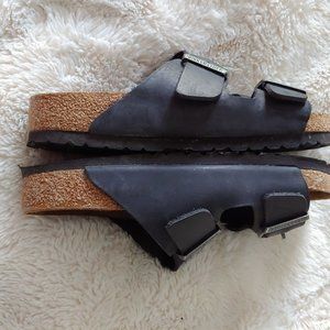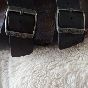Birkenstock 2 strap black leather 38 approx 7-9 womens