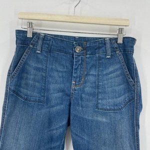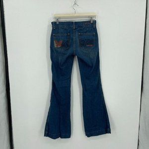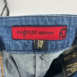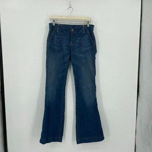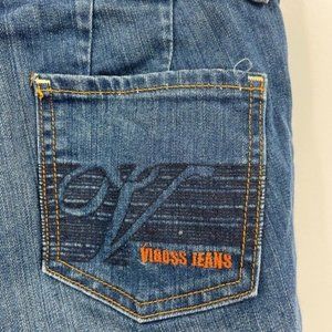 Vigoss Womens Wide Leg Flare Retro Jeans Size 29 Y2K 90s Blue Low Rise Butterfly Embroidered Rear Pockets Stretch. Condition is preowned in good condition with no rips, tears, or stains. Comes from a smoke free and pet free home.