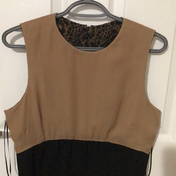 This dress exemplifies the elegance and class of a Michael Kors piece. This take on the “little black dress” is enhanced by the use of a satin trim with a small black bow and just the right amount of glitz and glitter from the threads woven through the black lace top. The right dress for all occasions dressy or formal. The pictures do not do it justice. Pictures inside out to show there are no stains on the upper lining. Only worn a few times.