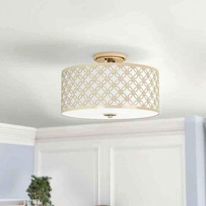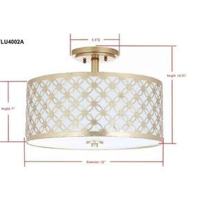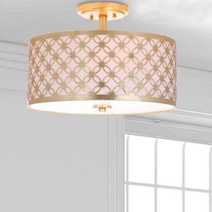 16" Inch Gold Semi Flush Mount Light Fixture By House Of Hamptons - New In Box