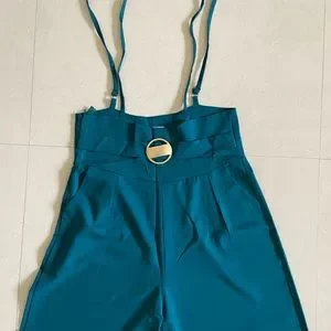 Teal Blue Suspender Pants for Women