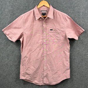 RVCA Men's Casual Button Up Shirt Pink Short Sleeve Slim Fit Size Medium M