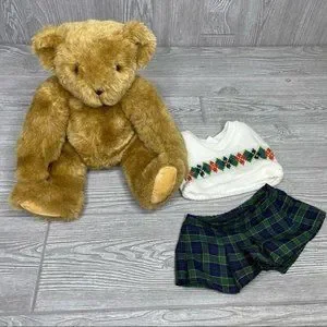 15“ Vermont teddy bear with clothes light brown needs repair arm is off