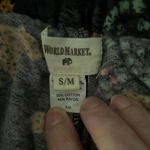 World Market Leopard Lounge Pants in very good condition…size S/M…very soft flannel like feel…2 side pockets…elastic waist with tie approx 14 inch waist and 29 inch inseam…cotton/rayon blend