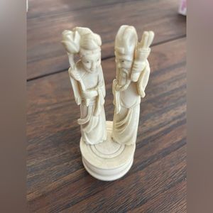 Wife is carrying a flower while man Carrie’s perhaps bread