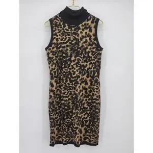 Calvin Klein Animal Print Sleeveless Turtleneck Sheath Dress Size Large