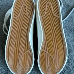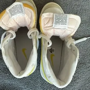 Barely worn, but has some wear marks from being stored outside the box. Little darkening on one of Nike swooshes as pictured.