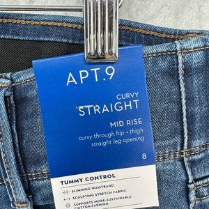 Apt 9 Jeans Womens 8 Blue Denim Curvy Straight Slimming Tummy Waistband Pants