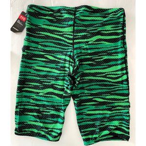 TYR Durafast Elite Crypsis Allover Jammer Men Swim Black Green Size 38 - $55