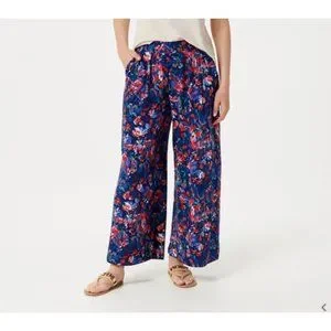 Cuddl Duds Flexwear Pants Womens Size Medium Blue Floral Print Wide Leg Pull On. Great pre-owned condition. Pockets.