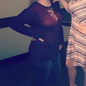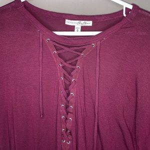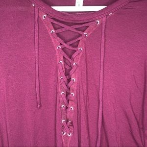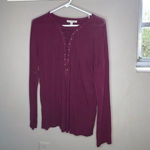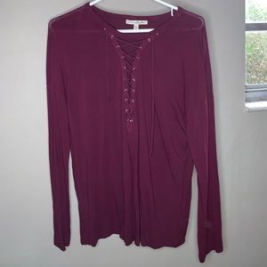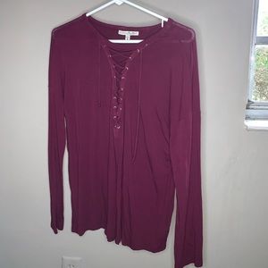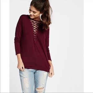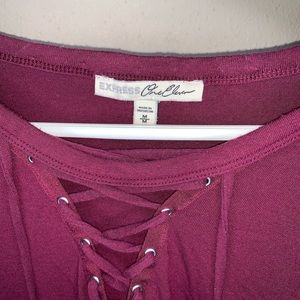 Express Criss Cross Strappy Medium Long Sleeve. Excellent condition. Worn 2-3 times. Soft and stretchy. Burgundy maroon plum wine in color