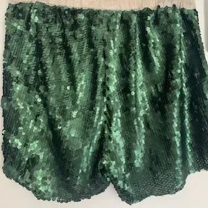 Zara Matte Green Sequin Shorts Small
