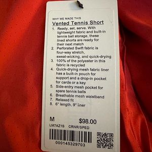 Lululemon Vented Tennis Short 🎾