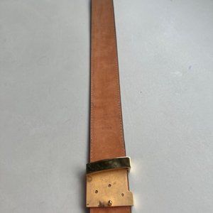 Authentic Louis Vuitton leather belt brown Logo gold buckle. Buckle has some scratches.