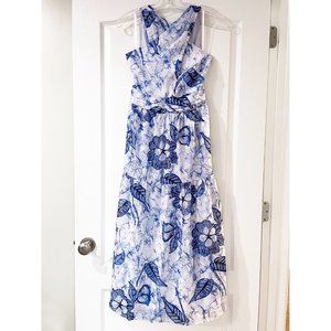NWT WHBM Blue Floral Batik Halter Midi Dress Size 2