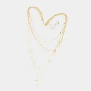 BEAUTIFUL MULTI LAYERED NORTH STAR CROSS PENDANT NECKLACE