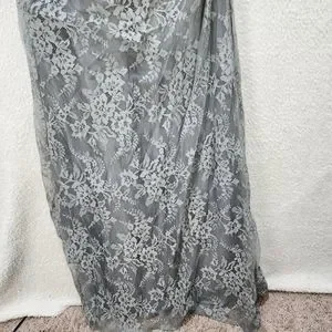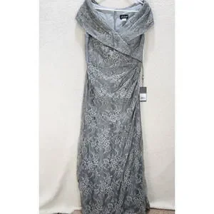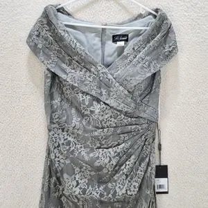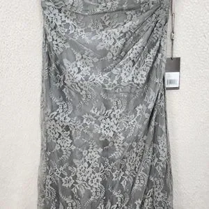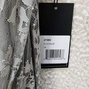 La Femme Portrait Neck Lace Gown Women's 14 Platinum Embellished Rhinestones