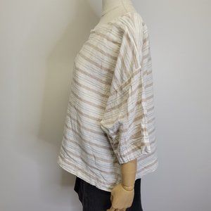 Pure J. Jill 100% Linen Boxy Oversized Lagenlook Ivory Beige Stripe Top Petite M