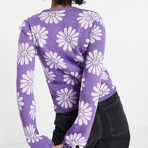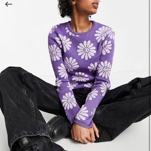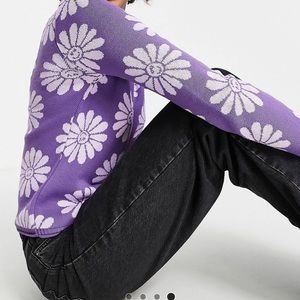 2 for $20 ✨ NWOT Purple ASOS smiley flower pattern sweater