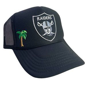 NEW VINTAGE PALM TREE LOS ANGELES RAIDERS BLACK RETRO MESH TRUCKER HAT CAP ADULT