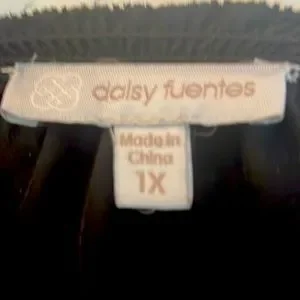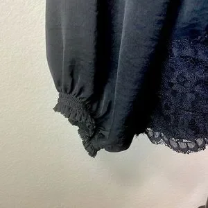 🌸Daisy Fuentes Black Hi-Lo Top Blouse w/Smock Neck and lace hem Size 1X EUC