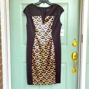 Connected Apparel Little Black Dress Sequin Hourglass Front Cap Sleeve Size 12