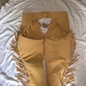 Tan Ultra Suede show chaps.