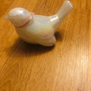 Beautiful vintage white opalescent bird with pink rose and bow collar