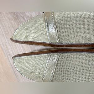 Matisse Estee Khaki Canvas and Gold Leather Open Toe Basket Weave Wedge 7.5