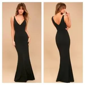Lulu's Exclusive! Enchantress will be your middle name when you step out in the Lulus Melora Black Sleeveless Maxi Dress! Medium-weight stretch knit falls effortlessly from tapering straps, to a darted bodice with V-neck and back. Fitted waist meets the full-length maxi skirt with a flaring mermaid hem. Hidden back zipper/clasp. EUC