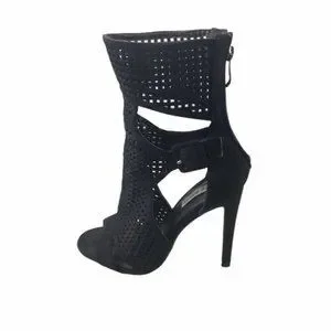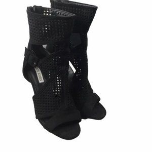 Cape Robbin Suede Black Open Toe Chunky Heel Boots Shoe Size 6