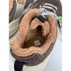 Faux shearling-lined needlecord and suede sneakers. Ultra-lightweight rubber sole with an indented tread. Antibacterial natural cork insole.