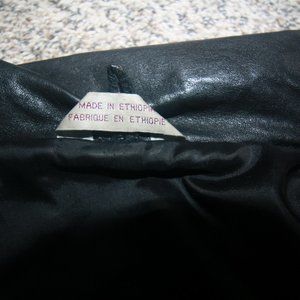 This Elico Ethiopian leather jacket is in great condition. Minor signs of wear. One button missing on the bottom, though you can't tell with it unbuttoned. Black leather, durable and warm. Size US XL. From a non-smoking home. Questions? Leave a comment below!