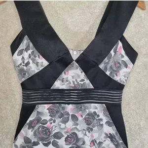 Ladies bodycon dress size 10 white black grey pink floral print with black trim. Ladies lovely bodycon dress by Lashes.