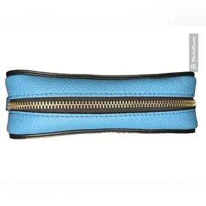 Beautiful bright blue pebbled leather