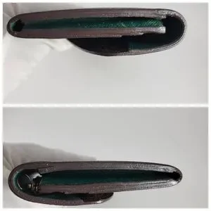 Please see pictures. Item is pre-owned and has minor wear that includes, but is not limited to, coin residue, missing leather zipper pull, and color on snap portion missing (can probably paint). Edging and stitching prestine. Sold as is.
