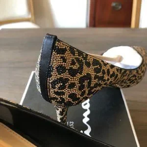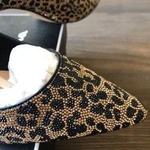 Beautiful, classic crystal leopard pumps - size 8 Medium width. Heel is 2 3/8". Leather lining, lightly cushioned footbed, leather sole. These are basically brand new - were worn 1 time for a few hours for a special occasion.