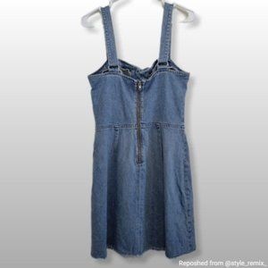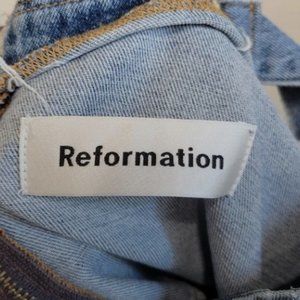 Reformation Mini Demin Dress with tie up front and cut off skirt.